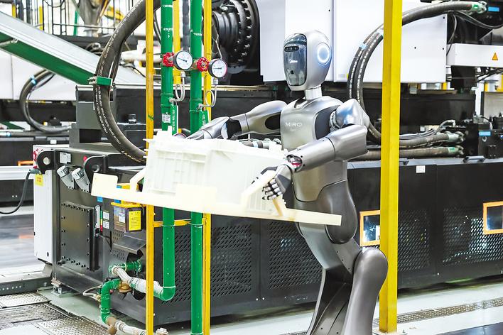 8月26日,美的洗衣机荆州工厂获得权威机构认证,成为全球首家智慧工厂。这是一个正在工作的人形机器人。 (图片提供:报道组)