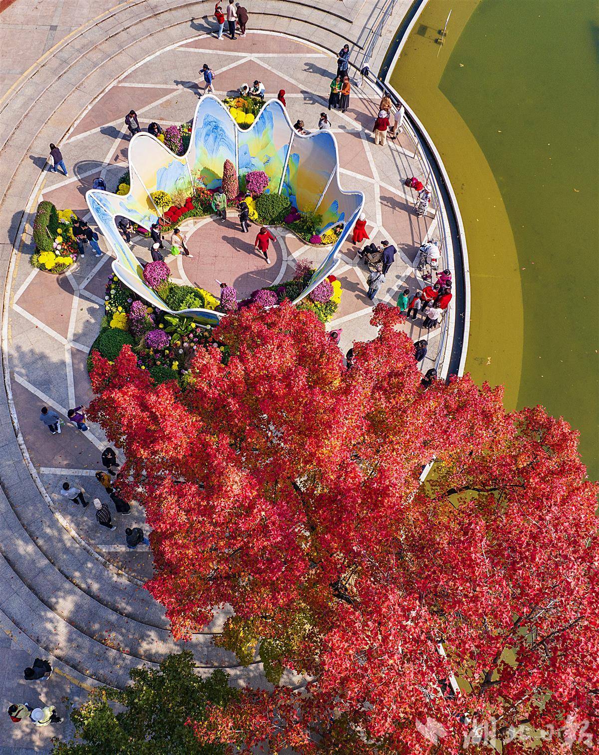 - 阅17011月4日,武汉中山公园喷泉旁的两棵枫树已经起火。第42届金秋菊花展正在树下举行。许多游客和城市居民观看。......